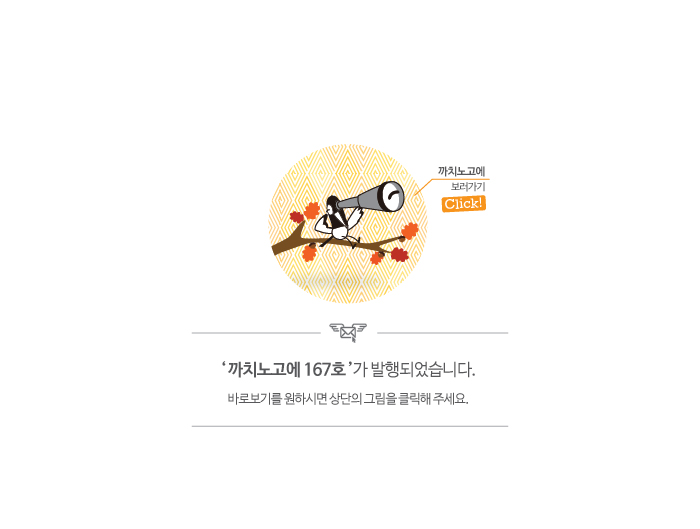 까치노고에 167호가 발행되었습니다. 바로보기를 원하시면 상단의 그림을 클릭해 주세요.