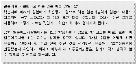 제26회 : 보란티어 일본어교사를 위한 교수법(1) - 일본어를 가르치는 것에 대하여 생각한다 -