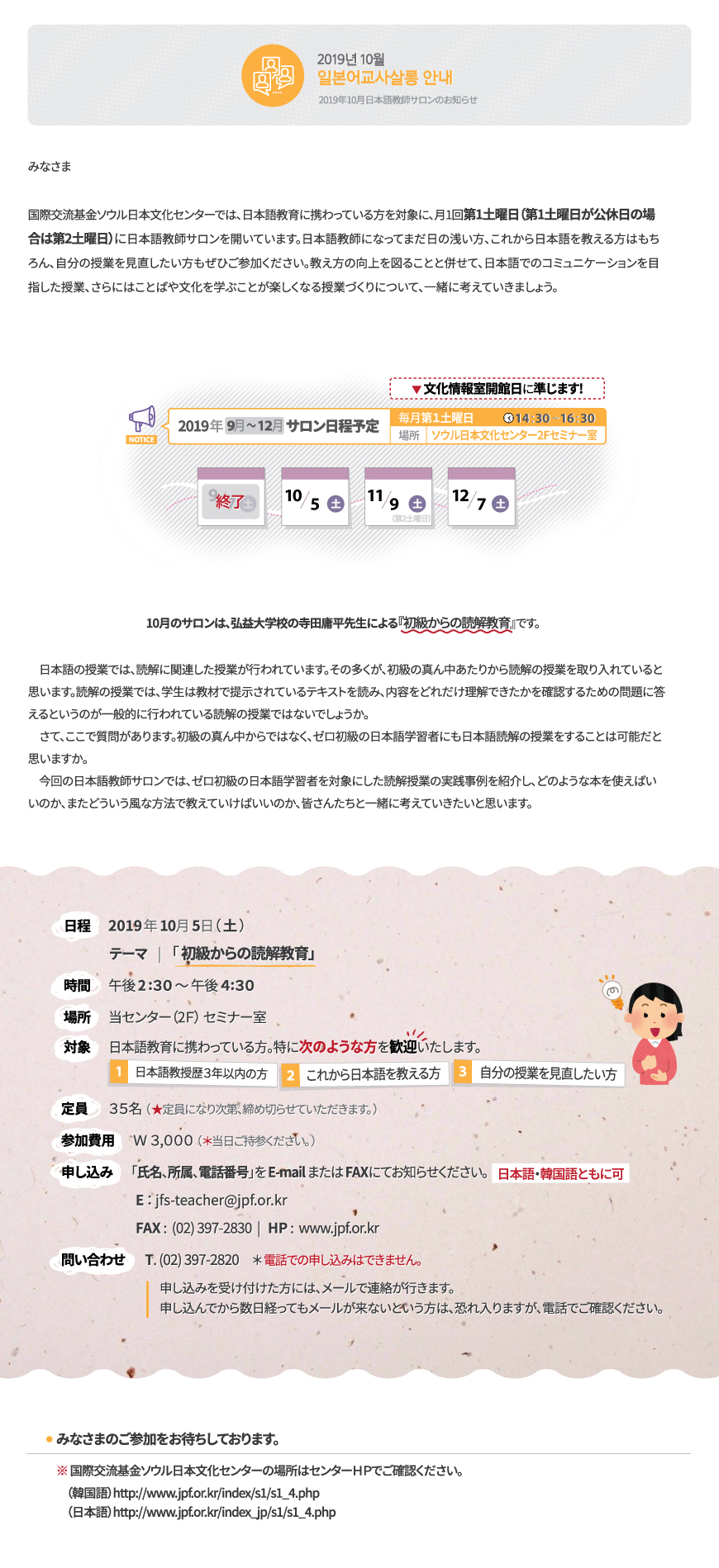 9月のサロンは、ソウル日本文化センターの田中綾紗専門家による「『まるごと中級1(B1)』の授業を考える~