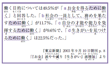 신문에 “일본인의 일하는 목적” 등을 알아 본 여론조사 기사가 실렸습니다. 함께 읽어봅시다.