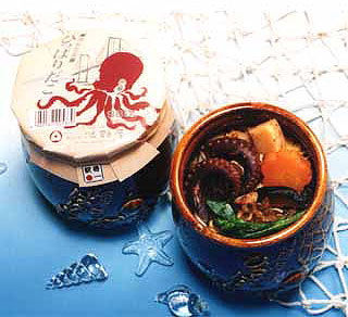 한국 분들은「낙지항아리」를 아시는지. 낙지를 잡기 위해 해저에 가라앉혀 사용하는 항아리이다. 이 도시락의 용기는「낙지항아리」와 매우 흡사하게 만든 도기 제품이다. 야채와 해산물을 넣어 솥에서 지은 밥처럼 맛을 낸 밥 위에 낙지조림과 낙지튀김이 야채조림과 함께 얹어져 있어, 이 도시락의 낙지항아리는 꽉 차 있다.