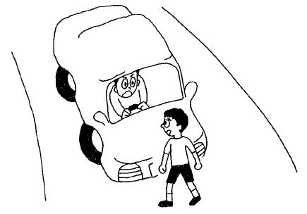 (남자아이가 있어서) 차가 멈췄다.