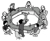④ 양 팀을 서로 마주보게 앉아, 서로 이유를 발표한다.