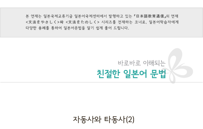 지난 번에는 타동사와 자동사의 기본적인 사용법에 대해 설명 드렸습니다.