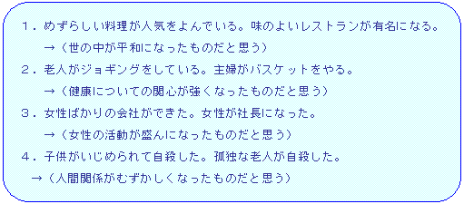 마지막으로 학습자에게 전반부의 현상부분과「~ものだと思う」라는 표현 부분을 생각하게 합니다.