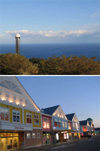 이토 역에서 마린타운행 버스를 타고 5분 정도 가면 나타나는 마린타운. 위에서도 말한 것처럼 이 곳은 휴게종합시설로, 눈앞으로 시원하게 펼쳐지는 바다, 그 바다가 지닌 천혜의 자연경관으로 편안함을 느낄 수 있는, 재충전의 장소로 손색이 없다.