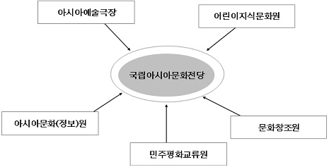 국립아시아문화전당은 아시아 및 세계 각국의 이질적이고 다양한 문화들이 자유로운 교류를 통해 새로운 형태의 문화를 창조하고, 세계적 트랜드를 선도하는 문화발전소를 지향한다. 이와 함께 아시아 문화의 연구와 개발, 그리고 확산을 통해 아시아 문화공동체를 형성하고 풍부한 문화자원을 축적해 아시아의 동반성장을 유도하는 촉진제의 역할을 할 것이다.