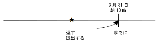 당신: 明日の朝は10時(まで/までに/に)課長に企画書を提出しよう。