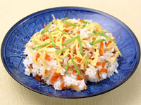다음에 소개하는 스시는「치라시즈시(ちらし寿司)」이다. 이것은 초밥에 가늘게 자른 생선회나 야채 등을 혼합하는 스시지만, 지방에 따라 혼합하지 않고 균등하게 가지런히 자른 소를 초밥 위에 얹어 먹는 곳도 있다. 이 치라시즈시도 일반 가정에서 잘 만들어먹는 스시이며, 큰 접시에 담아 내면 각자 개인 접시에 덜어 먹는다. 일본에서는 3월 3일「히나마츠리(ひなまつり)」에 잘 먹는 요리이기도 하며, 외형이 화려해서 축하할 일이 생기면 잘 만들어먹는 스시 중 하나다. 지방에 따라 재료나 만드는 방법도 다르기 때문에, 일본여행을 할 때 먹어 보면 여러 맛을 즐길 수 있을지도 모르겠다.
