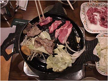 징기스칸은 먼저 철판에 기름을 두르고 고기를 올려 이리저리 구워가면서 먹으면 되지만, 고기를 맛있게 굽는 것이 요령이다. 생고기의 경우는 철판에 직접 고기를 올려놓고 굽고, 얇게 저민 냉동육의 경우에는 철판에 야채를 깔고 그 위에 고기를 올려 굽는 방식이 좋다. 어느 경우라도 고기를 타지 않게 굽는 것이 가장 중요하다.