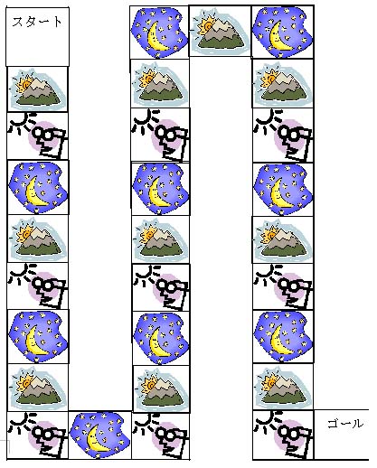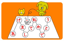 학습자 전원, 그룹(5명정도) 타이틀 「あいさつすごろく」 학습항목(문자・어휘・문형・표현):인사표현 목표 인사를 할 수 있다. 준비물 아침, 점심, 저녁임을 알 수 있는 그림 주사위 시트 활동순서 ① 5명 정도로 그룹을 만든다. ② 주사위 시트의 출발지점에 이름을 적은 말을 놓는다. ③ 순서대로 주사위를 던진다. ④ 나온 그림에 맞는 인사를 한다. 예컨대,