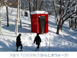 이 야외미술관의 특징은 겨울에도 관람할 수 있다는 것이다. 1년의 절반 가까운 기간동안 눈에 쌓이는 삿포로. 그 겨울의 혹독함을 역으로 즐기자는 발상에서 1월에서 3월까지 신발이 눈에 빠지지 않도록, 설피(雪皮) 즉,「간지키(かんじき)」를 신고 조각을 감상하며 도는「간지키워크(かんじきウォーク)」를 운영한다. |