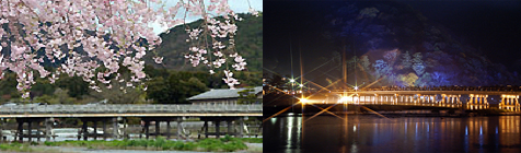 ‘게이샤의 추억’의 첫 장면에 등장하는 도케츠쿄(渡月橋)는 ‘달을 걷는 다리’ 라는 뜻으로 총 길이 154M, 목조로 보이지만 콘크리트로 되어있는 다리이다. 강을 따라 수많은 포장마차들이 들어서 있고 작은 나룻배를 탈 수 있는 선착장도 있다. 본인의 경우, 여름에 상류에서 친구들과 물놀이를 하고 포장마차에 들려 가볍게 맥주한잔 하곤 했는데, 그 상쾌함이 말로 표현 할 수 없을 정도였다.