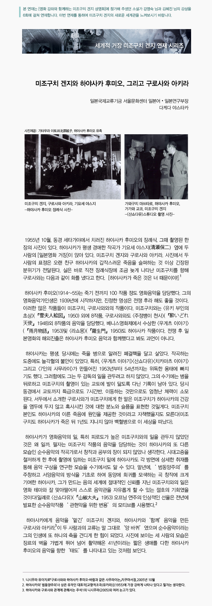 미조구치 겐지와 하야사카 후미오, 그리고 구로사와 아키라